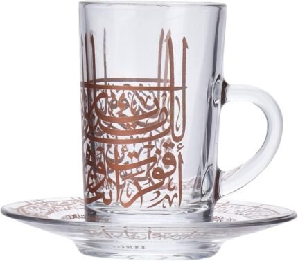 Shouq BR طقم 6 استكانة شاي بيد + 6 طبق برونز
