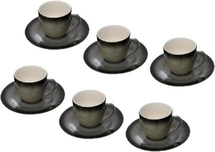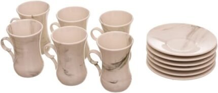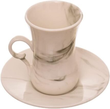 Gray Marble طقم إستكانة 12 قطعة بالطبق بورسلين