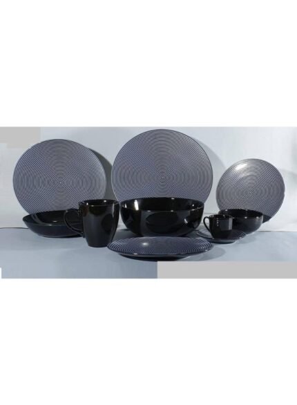 Gray Circels-Black Opaque طقم عشاء 46 قطعة بورسلين