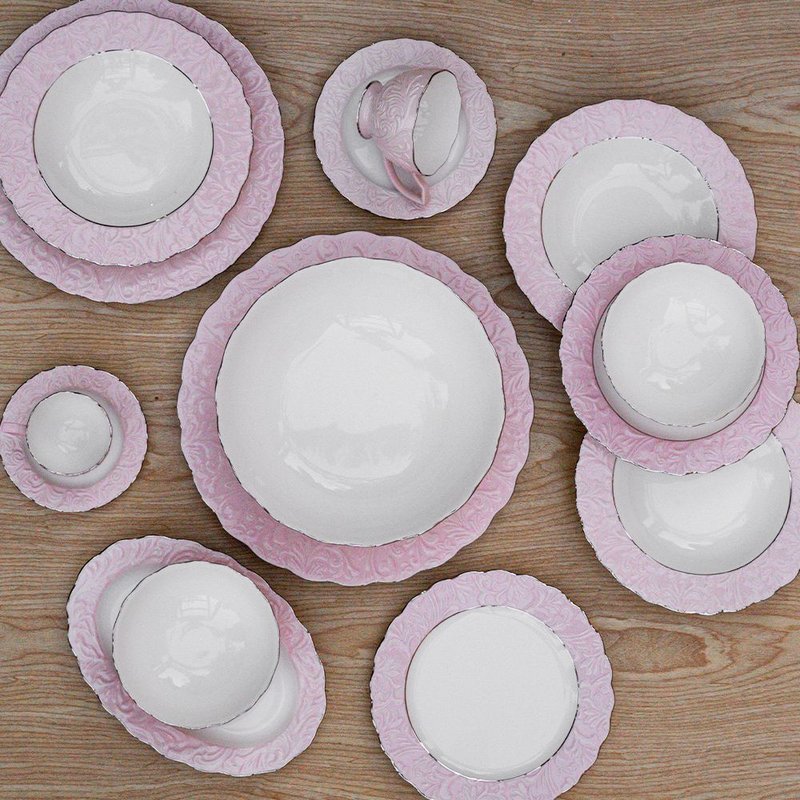 Rozen Rose + Platinum Line 52 Piece Dinner Set