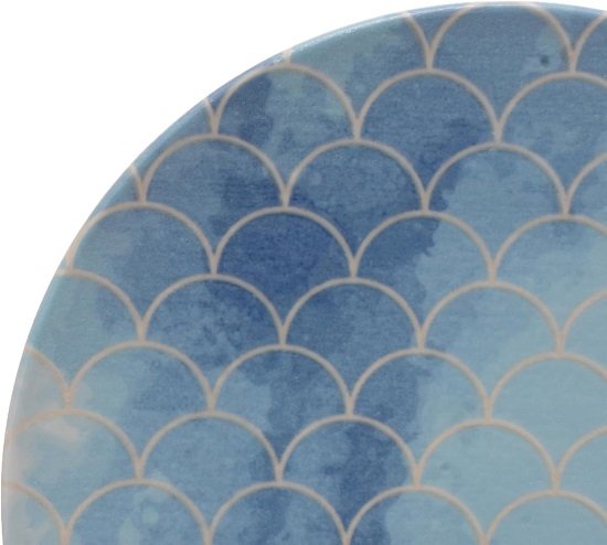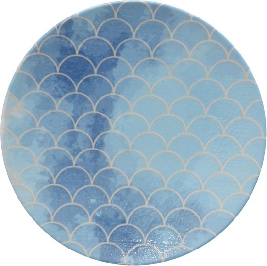 روزا طبق حلوى من البورسلين على شكل قشور سمك، مقاس 21 سم، أزرق