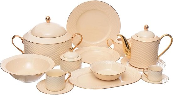 Polo Cream color with Gold طقم 57 قطعة بورسلين