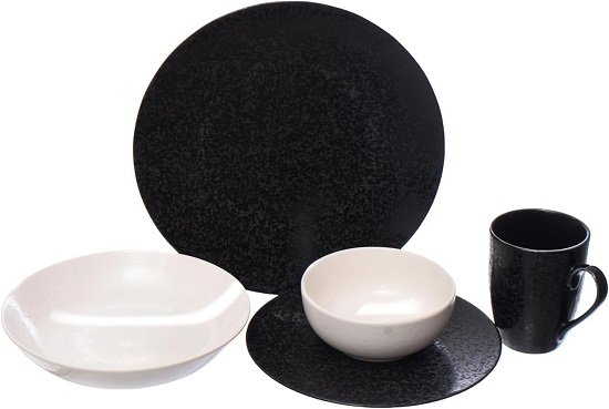 روزا طقم عشاء من كوب، اسود/ابيض بورسلين