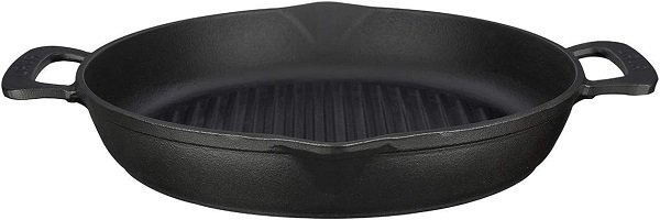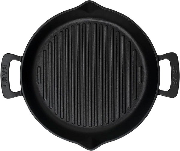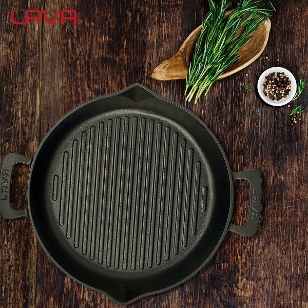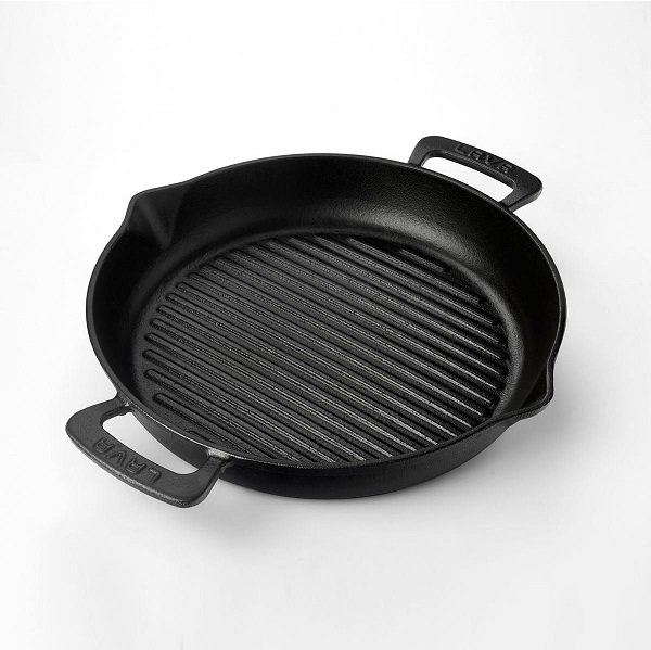 طاسة شواء من لافا متكاملة مع مقابض الحديد المصبوب. القطر Ø 28 سم. احمر مطفي