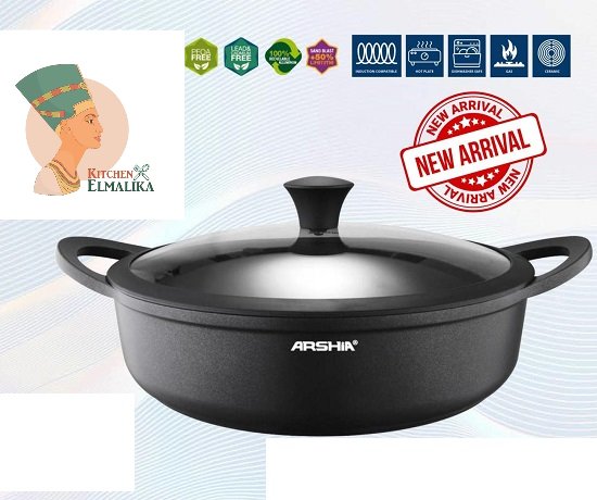 صنية تيفال 32 سم 2 يد غطاء سيلكون اسود arshia 3118