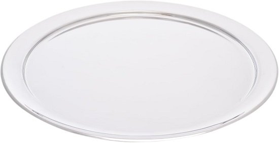 صينية دائرية من الفولاذ المقاوم للصدأ من زينيا، مقاس 37 سم، ستانلس ستيل، مستدير، فضي .