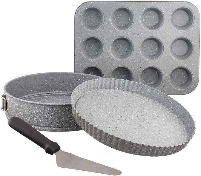 طقم ادوات خبز مكون من 4 قطع بلون الرخام الرمادي من نيوفلام