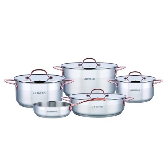 طقم استيل 9 قطع روز جولد + 3 غطا بيركس ARASHIA3175