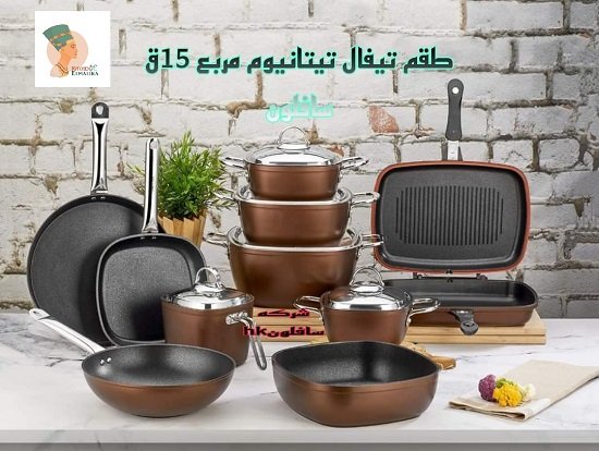 طقم سافلون تيتانيوم 15 قطعة نحاسي يد استيل