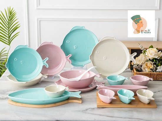 🔥 طقم عشاء 27 قطعه 🐠🥘FISH DESIGN 🥘🐟 لعشاق ⬅ التمييز والاختلاف والجوده 💁الطقم مكس التكوين: ٦طبق مسطح كبير🐠 ٦ طبق غويط مدور🐠 ٦ بوله شوربه غويط🐠 1 -1 سيرفيس كبير للتقديم مع حامل بامبو🐠🐟 ١-١طاجن فرن غويط نفس شكل الطقم سمك fish🐠🐟 🥘مع عدد ١ حامل بامبو ضد الحراره 5 قطعة صوصيره علي حامل بامبو الطقم بالكامل مصنوع من خامات عاليه الجوده صالح لاستخدام الفرن والمايكروويف وغساله الاطباق