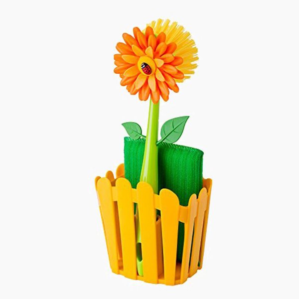 طقم فرشاة واسفنجة غسيل الاطباق فلاور باور ، قطعتين – متعددة الالوان VIGAR