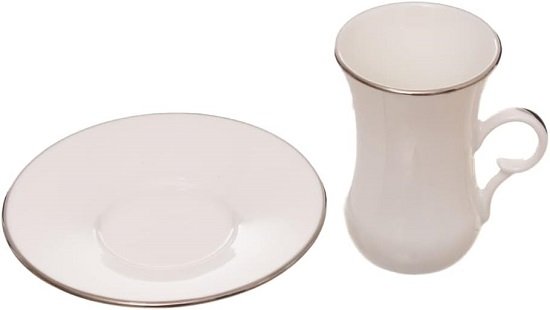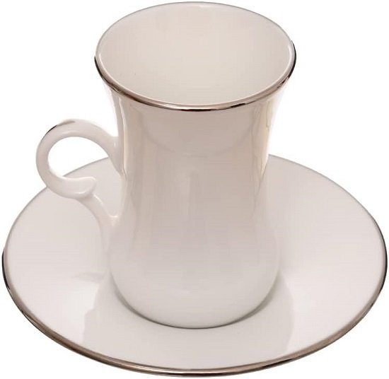 طقم فناجين قهوة تركي من البورسلين بحافة بلاتين بيضاء من روزا اف ام مكون من 12 قطعة مع الاطباق المتينة للمنزل والمكتب
