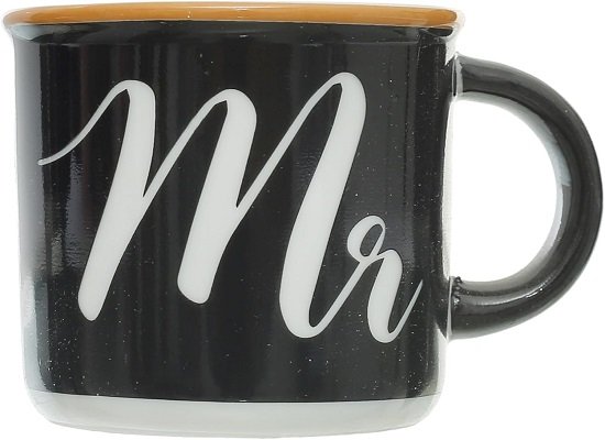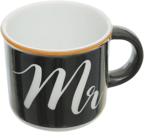 طقم فناجين قهوة مطلي بالمينا بتصميم مستر اند مسز من روزا اف ام، قطعتين، أسود/أبيض، بورسلين