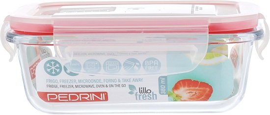 علبة ثلاجة زجاج مستطيلة 380 مل Pedrini