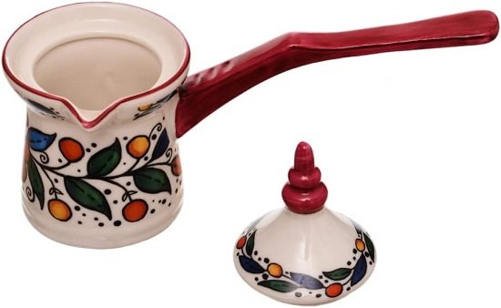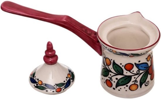 كنكة قهوة بورسلين عالية الجودة مع غطاء من روزا اف ام – احمر مشجر