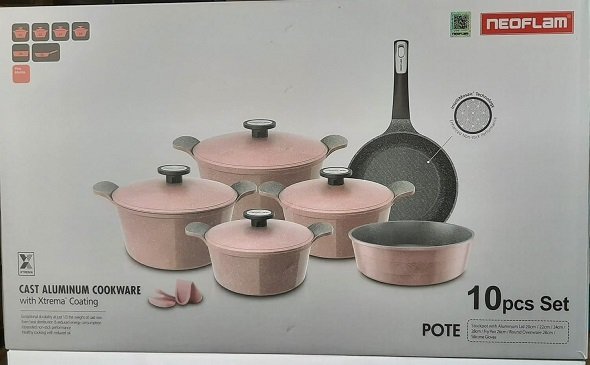 نيوفلام | طقم قدور – 10 قطع | بينك ماربل، ألومنيوم سيراميك