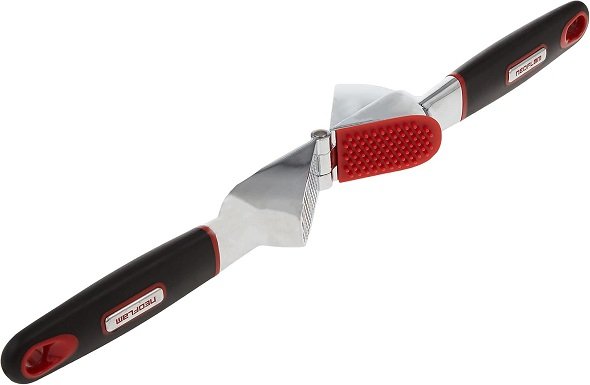 هراسة ثوم من الستانلس ستيل مع مقبض مطاط حراري من نيوفلام، مقاس 19×6.5 سم، اسود واحمر