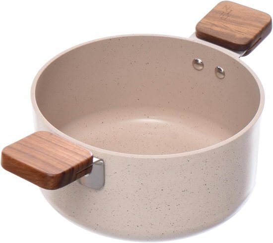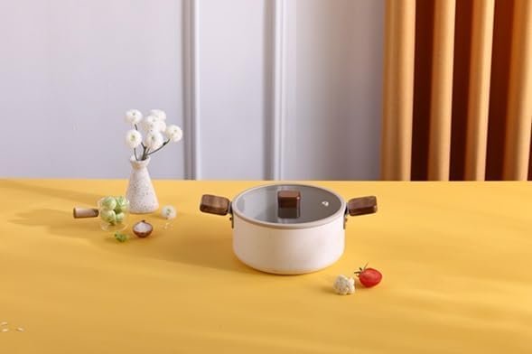 وعاء طهي Neoflam EK-BG-C18 Bien مع غطاء زجاجي، مقاس 18 سم، رخامي باللون البيج الكريمي