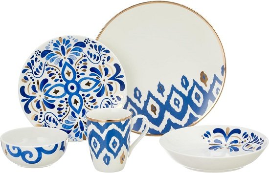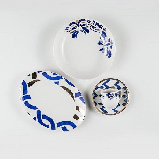 Dames Bleues Coup Decorated طقم عشاء 46 قطعة بورسلين