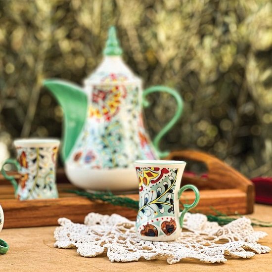Flora Green طقم شاى 8 قطع (براد + 6 أستكانة شاى)