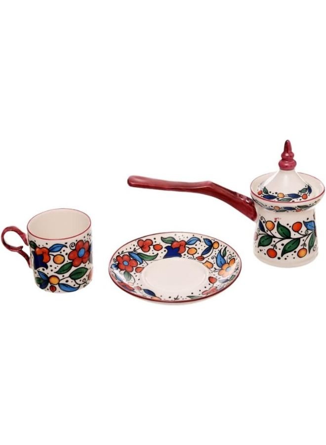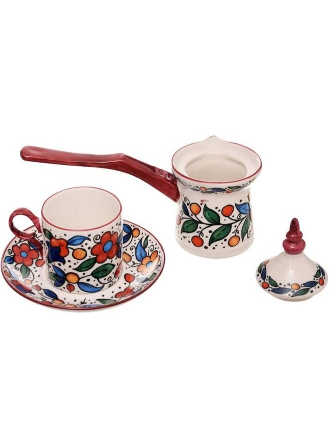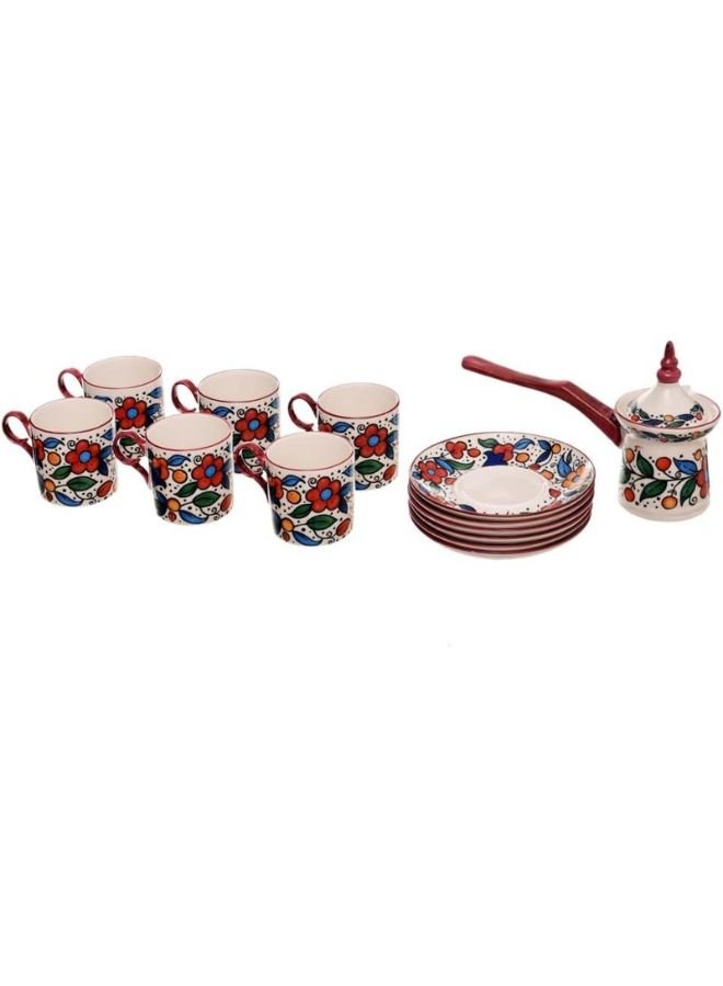Flora Red طقم قهوة 14 قطعة بالكنكة الصغيرة