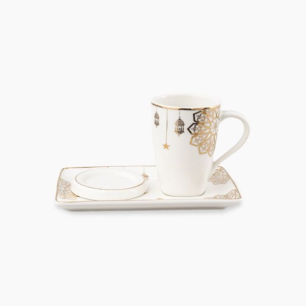Golden Decorations مج رومانى + طبق مستطيل +غطاء