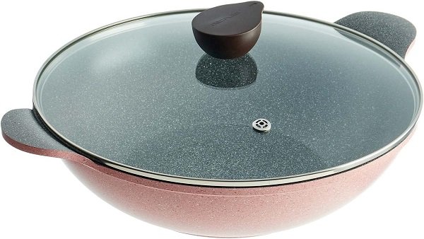Neoflam granite cooking wok with lid, 36 cm – pink