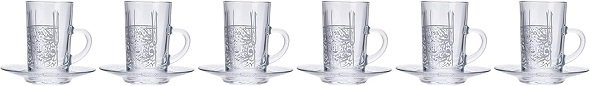 Shouq SL طقم 6 استكانة شاي بيد + 6 طبق فضي
