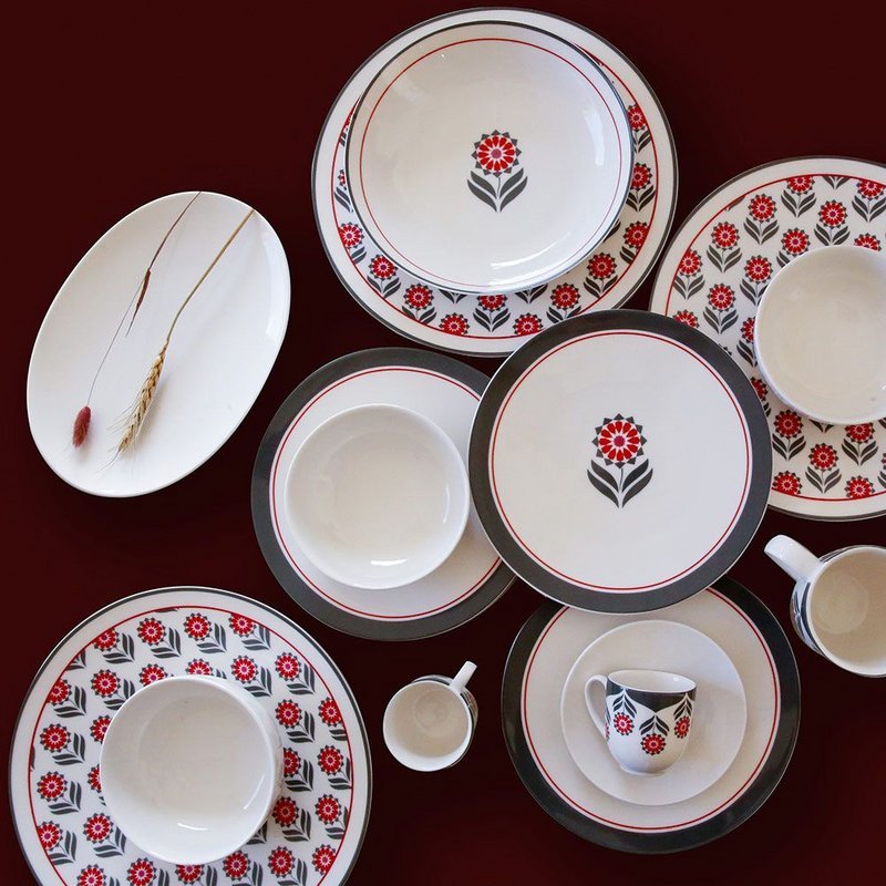Warda-Coup Decorated طقم عشاء 46 قطعة بورسلين